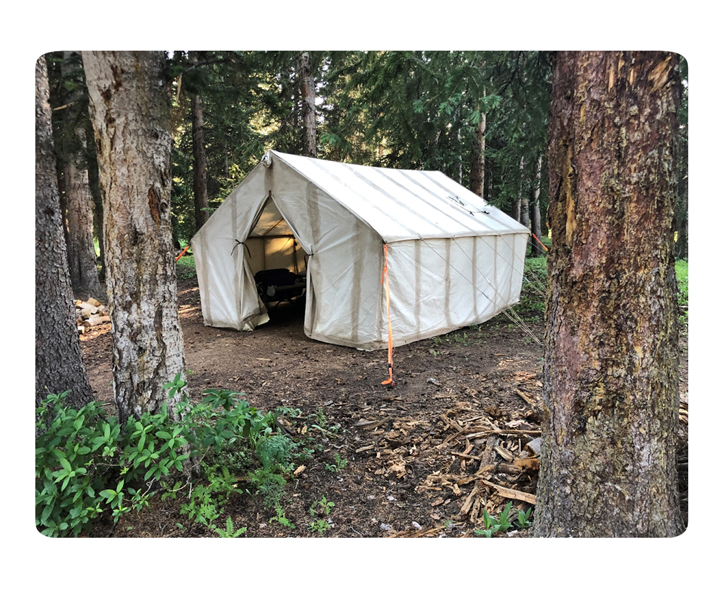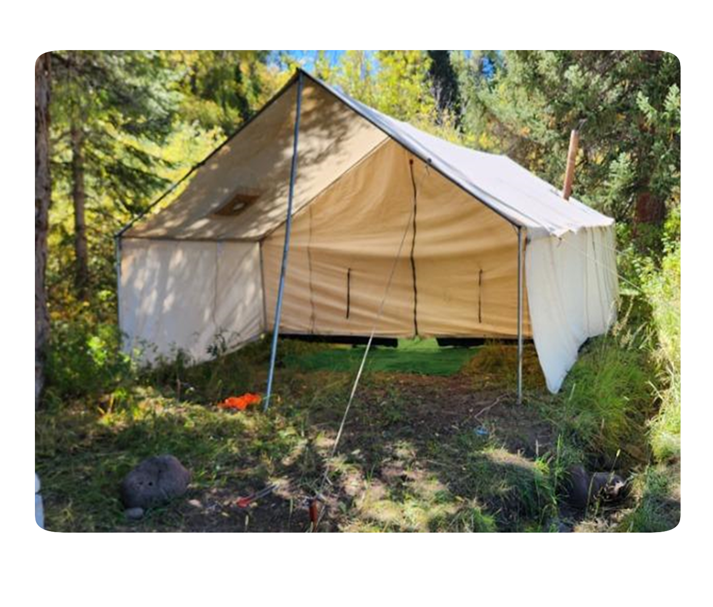 This is our largest canvas wall tent rental package and can fit up tp 6 people.